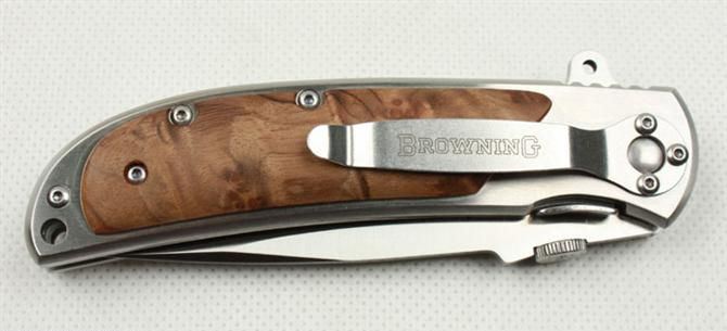 勃朗宁338猎鹰(钢本色) 刃材:440 硬度: 57HRC 全长:21.5CM 刃长:9CM 刃厚: 0.3CM 刃宽:2.8CM (最宽处) 柄长: 11.5CM 涂层:手工砂光 柄材: 钢+铝+天然白影木 重量:210克 锁定:线锁 带腰夹,勃朗宁公司原厂彩盒