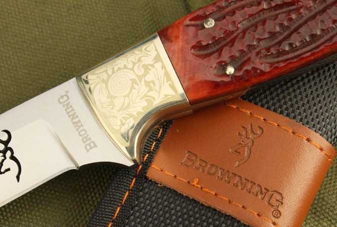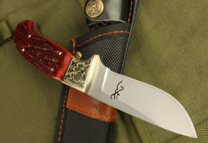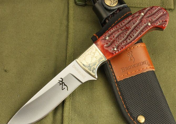勃朗宁-野兽之瞳猎刀 全 长: 19.8cm 刃 长: 9.3cm 柄 长:10.5 刃 厚: 4mm 刃 材: 7Cr17MOV 硬 度: 58.5HRC 总 重:210克 净 重:150克 表 面: 手工砂光 柄 材: 白铜头(刻花)+野兽骨片 刀 鞘: 特色牛津代 其 它: 出口原厂包装.配说明书.刀口锋利.手工制作.值得收藏