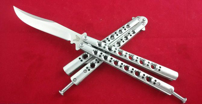 经典Benchmade-BM43(the one版) 全长 23.8CM 刃长 9.5CM 刃厚 0.3CM 刃材料 440C 刃硬度 58 柄材料 不锈钢压铸 柄硬度 40 重量 150克 刀鞘 高级尼龙套,可横竖挂皮带 the one款Benchmade- BM43,The one (唯一)精工打造,bowie博弈型刃,一体 柄型更坚固和耐摔,转动灵活,由THE ONE 出品,不可多得的精品甩刀!