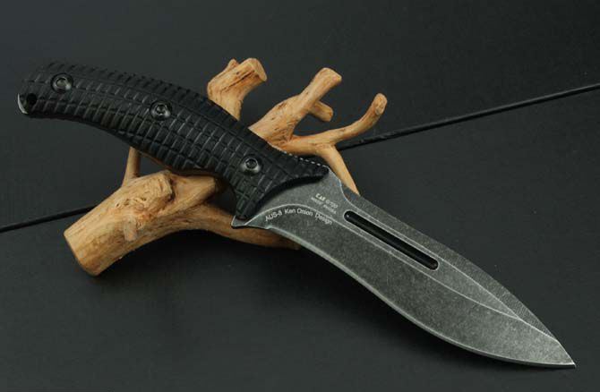 全 长:265mm 刃 长:140mm 柄 长:135mm 刃 宽:36mm 刃 厚:5mm 刃 材:AUS-8 重 量:405g(含包装) 硬 度:59-60HRC 表 面:石洗 柄 材:黑色G10柄 锁 型:定锁 其 他:配K鞘