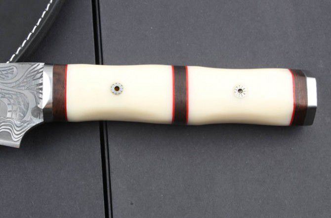 全 长: 55.6cm 刃 长: 38.8cm 刃 厚: 5.2mm 刃 宽: 6.6cm(最宽处) 刃 材: 420 硬 度: 57HRC 刀 重: 1322克(含包装) 表 面: 超镜光 柄 材: 钢+黑檀木+仿骨 结 构: 一体龙骨 刀 鞘: 牛皮套 +纸盒