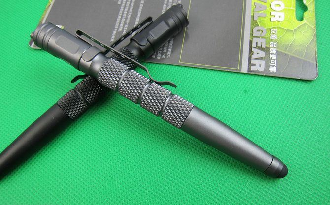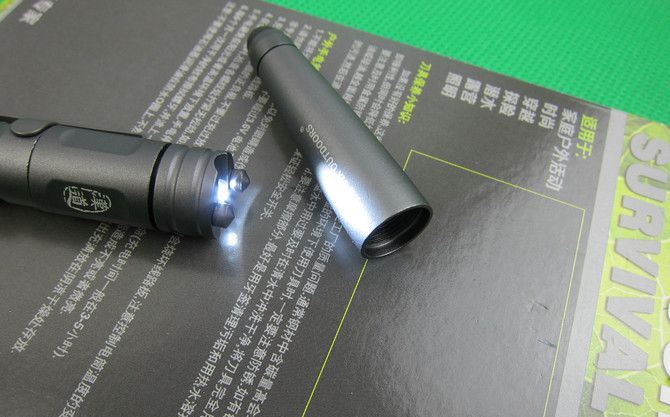 笔的末端为高光的LED手电筒,可以让你在任何环境下都能工作或自救,也可当信号灯使用除了防卫功能外又具有良好的工具性能。