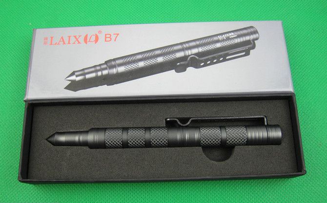 升级版睐斯B7撞击玻璃防卫笔 长度: 151mm 直径: 14mm 重量: 80g 材料: 6061-T6 航空铝 颜色:灰色色 表面: 硬质阳极氧化III性处理(平常使用不掉色) 用途:书写,防卫,玻璃击破器等 绝对推荐的一款随身笔,做工精美,航空铝材质轻易携带强度较好,笔身设计简单而且牢固。表面氧化处理平常使用不易掉色,笔原配笔芯为圆珠笔芯。战术笔,适合不同场合携带。飞机、展览、博物馆等均不会被拒绝携带,成为贴身的保镖。