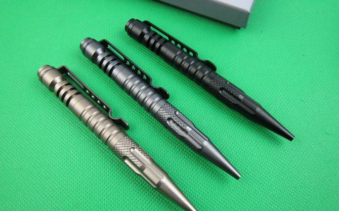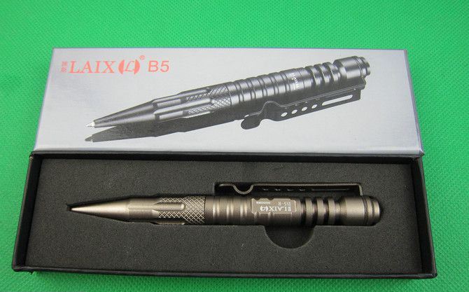 睐斯B5撞击玻璃防卫笔(三色) 长度: 142mm 直径: 13.2mm 重量: 80g 材料: 6061-T6 航空铝 颜色:灰色,金色,黑色,任选一色 表面: 硬质阳极氧化III性处理(平常使用不掉色) 用途:书写,防卫,玻璃击破器等