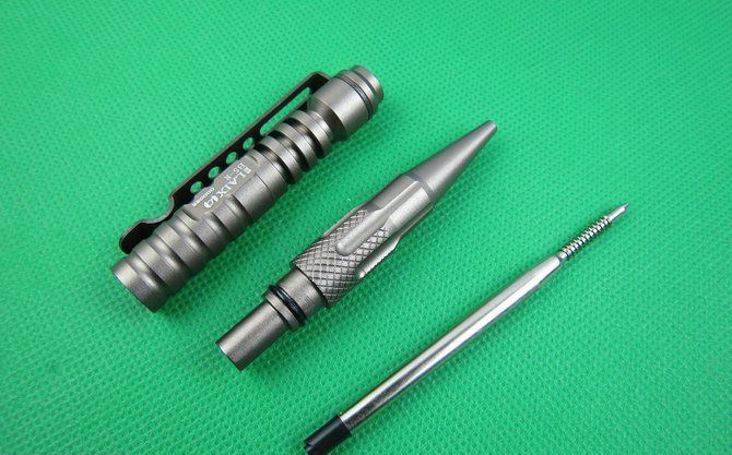 长度: 142mm 直径: 13.2mm 重量: 80g 材料: 6061-T6 航空铝 颜色:灰色,金色,黑色,任选一色 表面: 硬质阳极氧化III性处理(平常使用不掉色) 用途:书写,防卫,玻璃击破器等