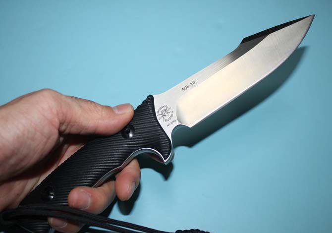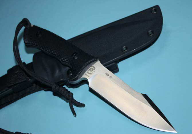 L.W利威斯巴达勇士 AUS-10钢材(砂光版) 全 长:26.7cm 刃 长:13cm 柄 长:12cm 刃 厚:0.6cm 表 面:砂光、缎面拉丝 净 重:350克 毛 重:500克 硬 度:59-60hrc (真空油淬热处理) 手 柄:黑色G10 刀 鞘:进口Kydex鞘