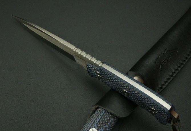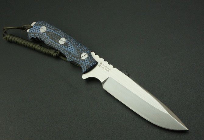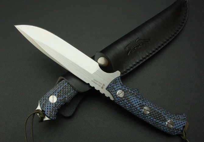 全长: 26.3cm 刃长: 12cm 刃宽:3cm 柄长: 12cm 刃厚: 0.5cm 重量: 380g 钢材: 9Cr18Mov钢 刃处理:一体数控线切割 硬度: 58HRC—60HRC 柄材: 米克塔(CNC电脑锣精密加工成型,精细手工打磨处理) 包装:纯手工缝制全黑军用牛津套 热处理: 采用真空热处理,再经过零下80度的深冷处理 表面处理: 砂光,,纯手工 正面激有二马LOGO