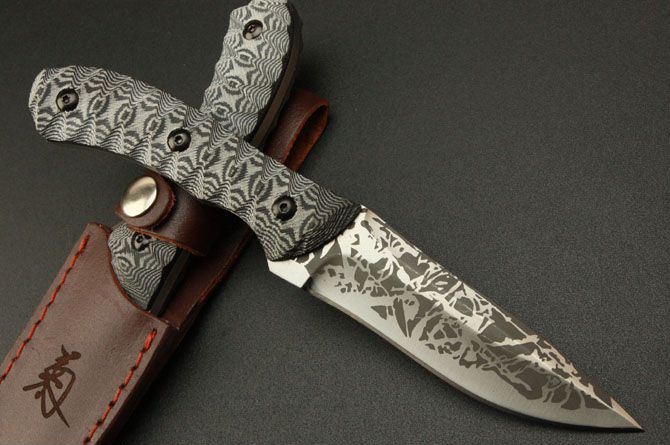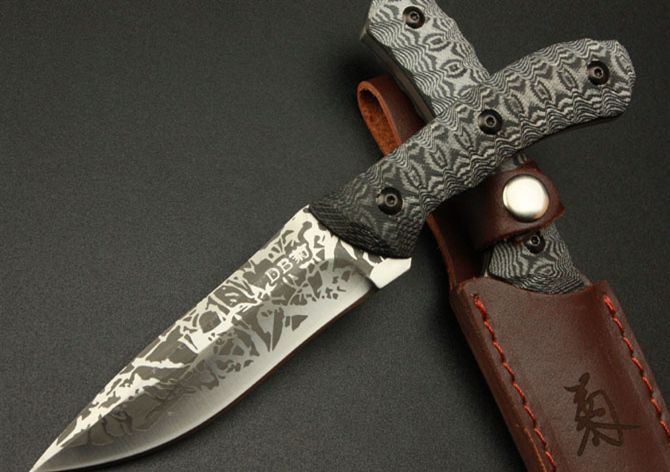 菊男—A05小直 全长:220mm 刃长:105mm 刃厚:4.7mm 刃宽: 30mm 刃材: 5Cr13 柄材: 米卡塔 硬度: 56HRC 总重:240克(含刀鞘) 刀套:皮套