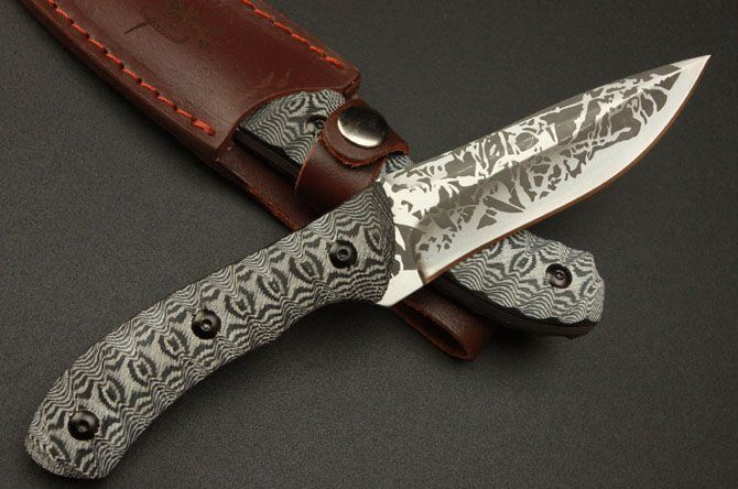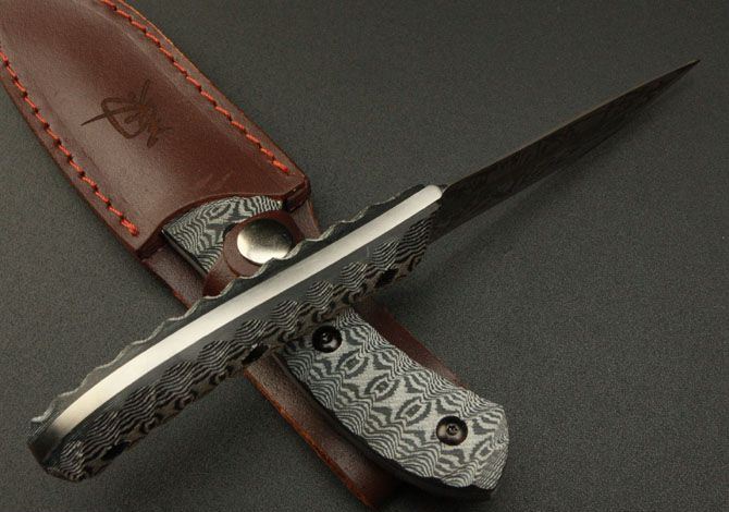 全长:220mm 刃长:105mm 刃厚:4.7mm 刃宽: 30mm 刃材: 5Cr13 柄材: 米卡塔 硬度: 56HRC 总重:240克(含刀鞘) 刀套:皮套
