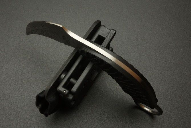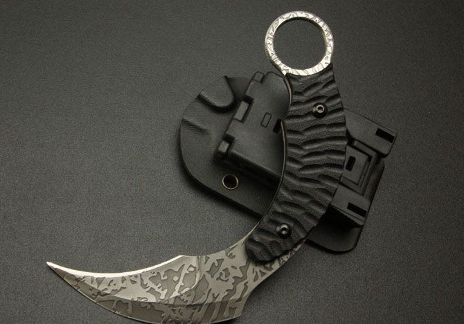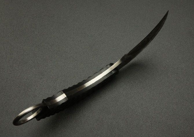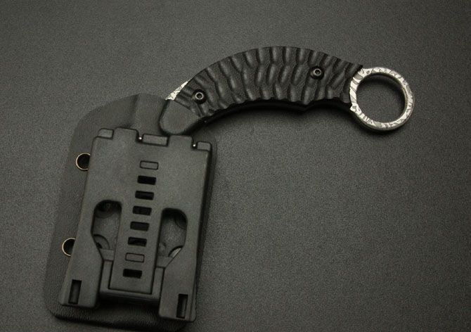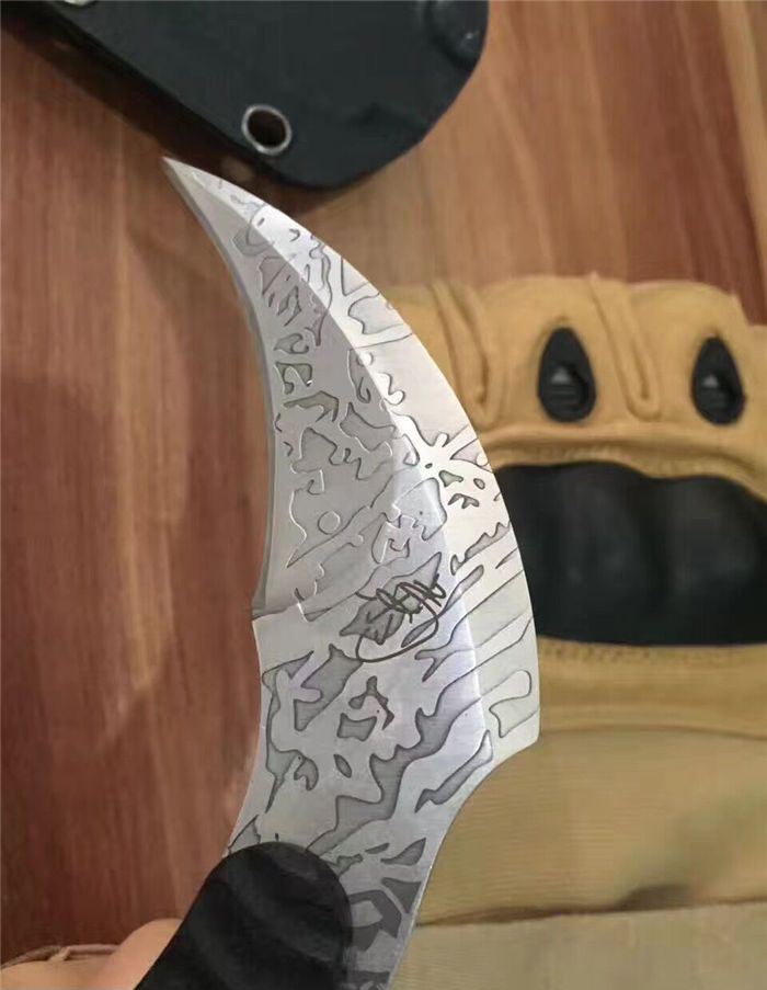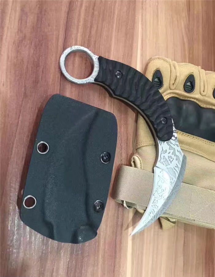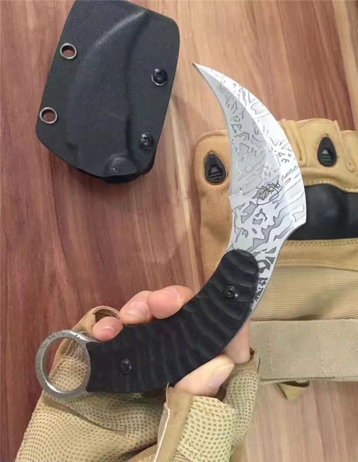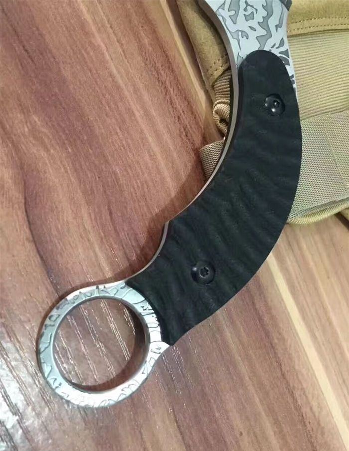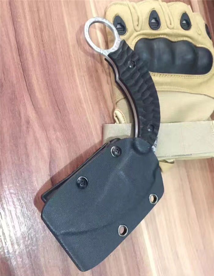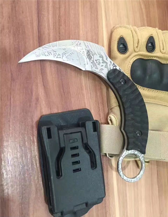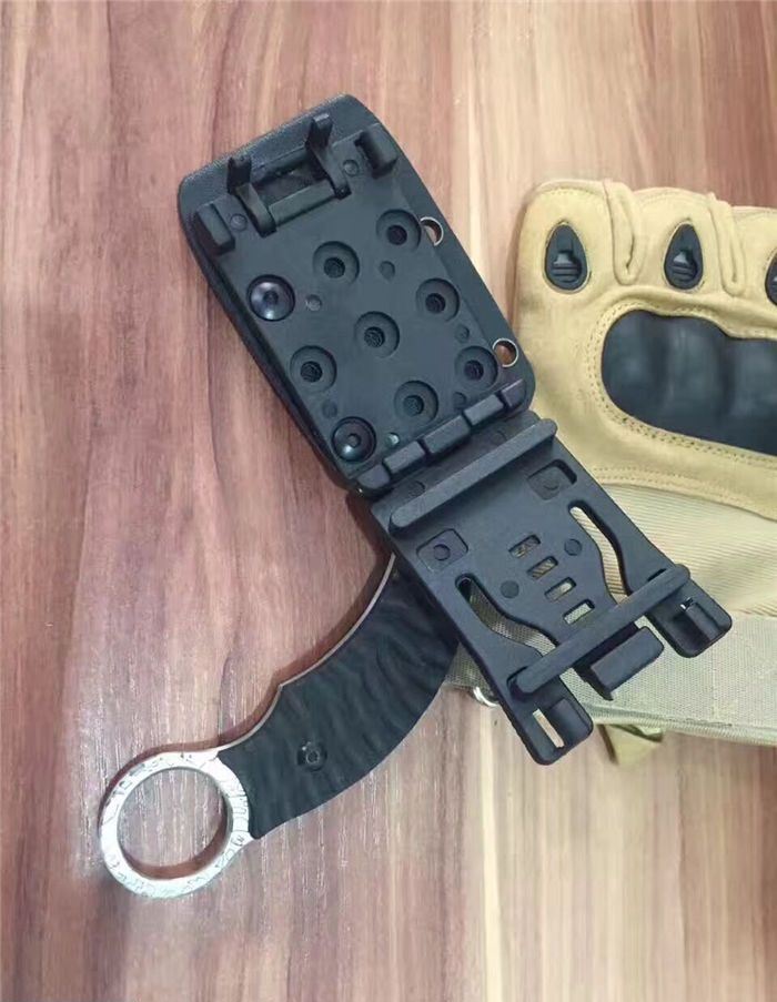 菊男—松鼠爪子 全 长: 16cm 刃 长: 6.5cm 刃 厚: 0.36CM 刃 材: 7Cr17 柄 材: G10 硬 度: 59Hrc 表 面: 波纹 净 重: 240g(含刀套) 刀 套: K鞘