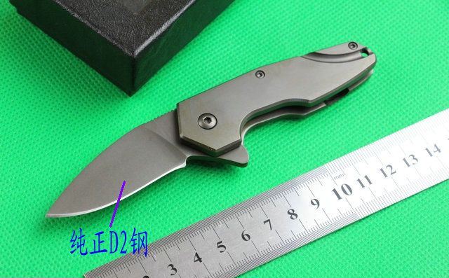全 长: 14.5cm 刃 长: 5.2cm 刃 宽: 2.3cm(最宽处) 闭 合: 8.6cm(柄长) 刃 材: D2,整刀CNC做出来的。 硬 度: 60 表 面: 全真空钛 刃 厚: 0.28cm 柄 材: 全钢 净 重: 克 包 装:礼品盒 锁 闭: 侧锁