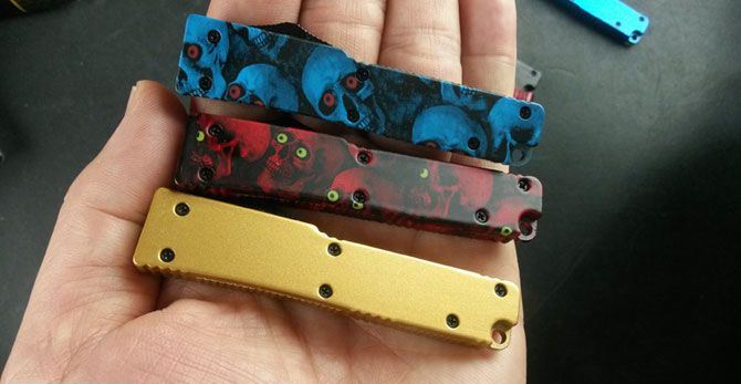 Mini OTF 迷你直跳刀(多彩) 展开:13CM 收起:8CM 柄材料:锌铝合金 刀刃:440 重量:50克 Mini 款直跳刀,小巧便携,尾端钥匙圈穿孔,可玩性强,多彩可供选择