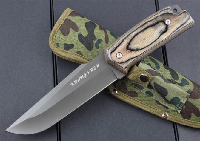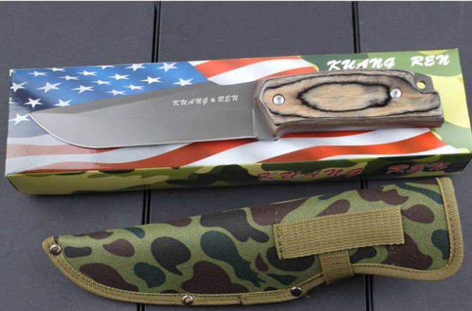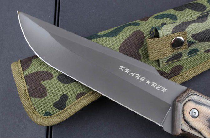 狂人直刀 全 长:290mm 刃 长:170mm 柄 长:123mm 刃 宽:44mm 刃 厚:5.5mm 刃 材:3Cr13Mov 重 量:641g(含包装) 硬 度:55HRC 表 面:氧化黑 柄 材:彩木 锁 型:定锁 其 他:配尼龙套彩纸盒