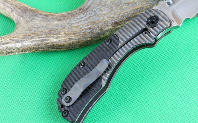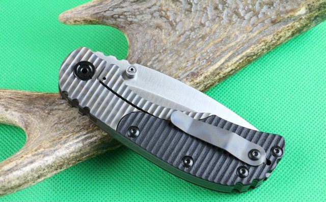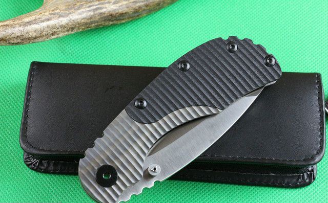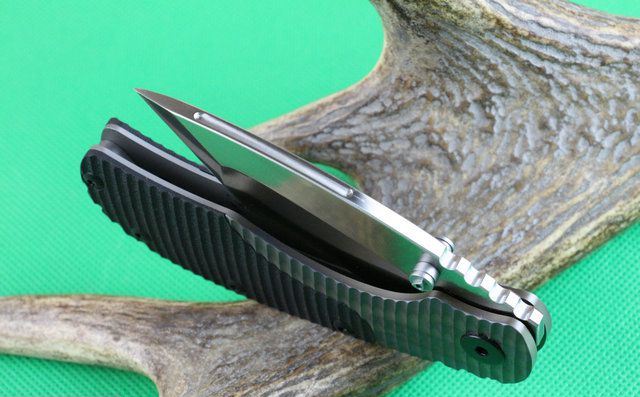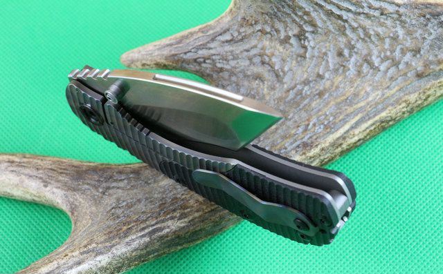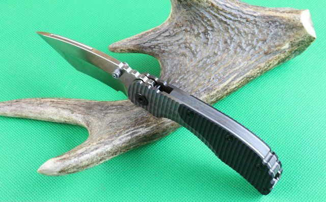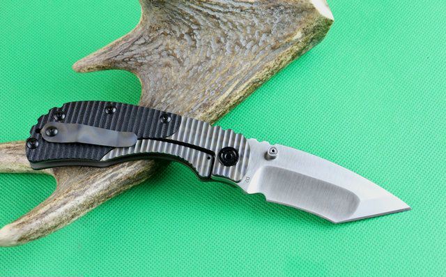 STRIDER.鱼鹰折刀(T头沙光) 全长:222mm 刃长:83mm 柄长:128mm 刃宽:34mm 刃厚:4.8mm 刃材:D2(深冷处理) 重量:260g 硬度:58-60HRC 表面:沙光 柄材:手柄G10+TC4钛合金、底骨TC4钛合金火烧纹处理。 刀夹:TC4钛合金 锁型:一体线锁。 螺丝:所有螺丝420不锈钢、硬度HRC45、全CNC精雕加工。 结构:一体锁杆式线锁结构、锁刀陶瓷定位珠、内置平面铜垫片。 其他:配仿皮套