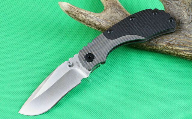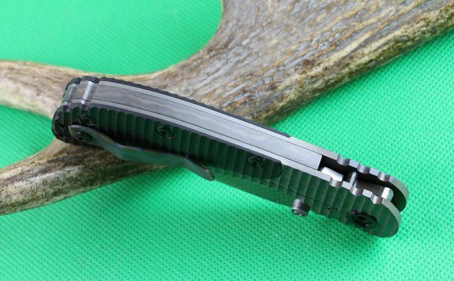 STRIDER.鱼鹰折刀(D头沙光) 全长:222mm 刃长:83mm 柄长:128mm 刃宽:34mm 刃厚:4.8mm 刃材:D2(深冷处理) 重量:260g 硬度:58-60HRC 表面:沙光 柄材:手柄G10+TC4钛合金、底骨TC4钛合金火烧纹处理。 刀夹:TC4钛合金 锁型:一体线锁。 螺丝:所有螺丝420不锈钢、硬度HRC45、全CNC精雕加工。 结构:一体锁杆式线锁结构、锁刀陶瓷定位珠、内置平面铜垫片。 其他:配仿皮套