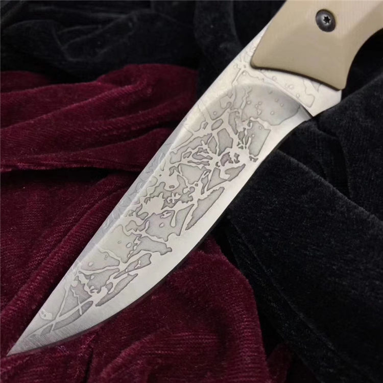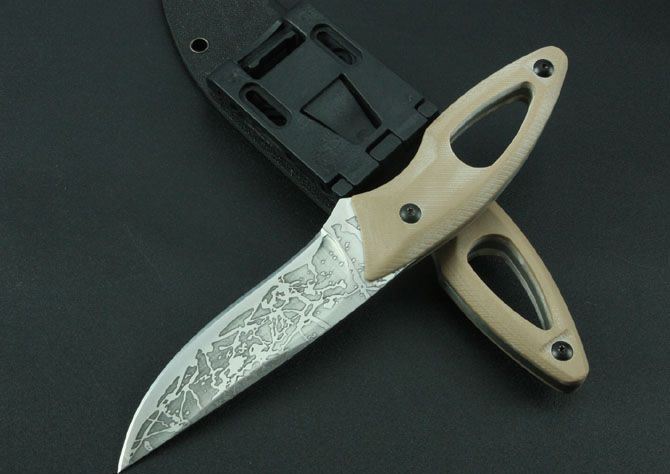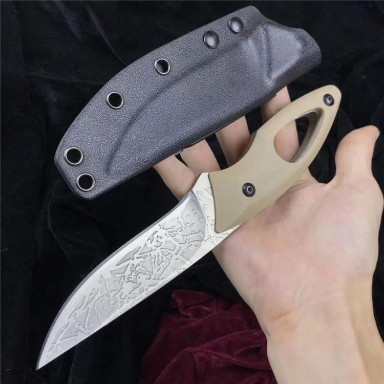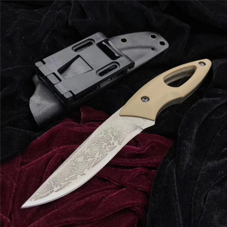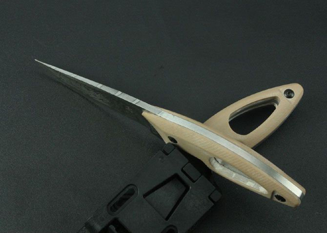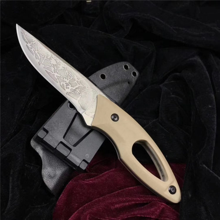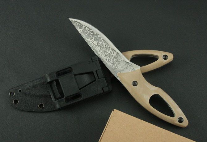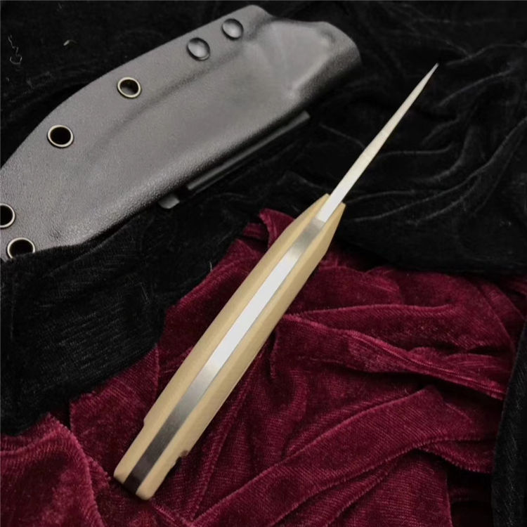 菊男S90直刀 全 长:230mm 刃 长:110mm 柄 长:120mm 刃 宽:30mm 刃 厚:4.7mm 刃 材:7Cr17Wov 重 量:270g(含包装) 硬 度:56HRC 表 面:腐蚀 柄 材:沙漠色G10 锁 型:定锁 其 他:配K鞘