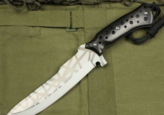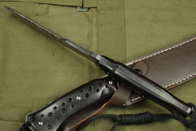 圣殿骑士 全长:30.5cm 刃长:18cm 柄长:14cm 刃厚:5.5mm 刃宽: 3.8cm 刃材: 3Cr13 柄材: 黑檀木 硬度: 53HRC 净重:450克 毛重:540克 表面处理:氧化钛