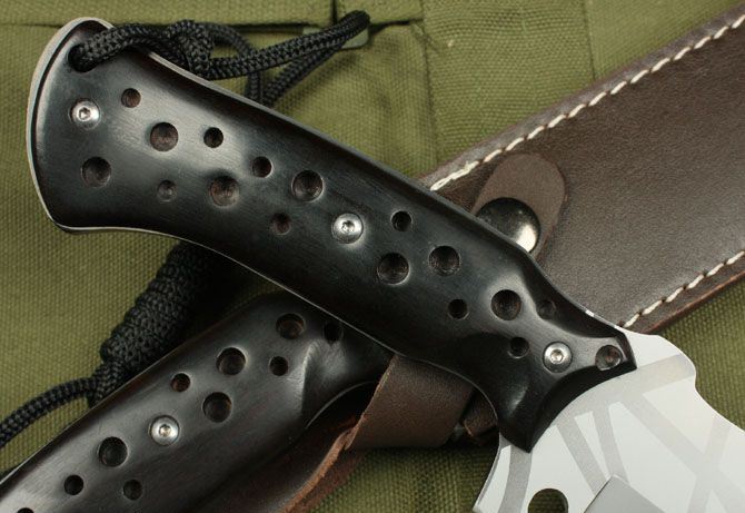 全长:30.5cm 刃长:18cm 柄长:14cm 刃厚:5.5mm 刃宽: 3.8cm 刃材: 3Cr13 柄材: 黑檀木 硬度: 53HRC 净重:450克 毛重:540克 表面处理:氧化钛