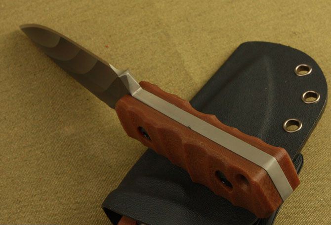 全长:19CM 刃长:9.5CM 刃材:7Cr17 硬度: 58HRC 刃厚: 0.61CM 刃宽:3.5CM (最宽处) 柄长: 9.5CM 柄材: G10 重量:360g(含包装) 涂层:氧化钛 刀鞘:K鞘