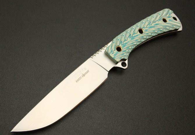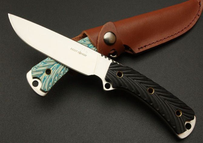 EUSST八喜小猎刀(绿色、黑色) 全长:23.7CM 刃长:11.5CM 刃材:7Cr17 硬度: 58HRC 刃厚: 0.37CM 刃宽:3CM (最宽处) 柄长: 11CM 涂层:砂光 柄材: 米卡塔 刀鞘:牛皮套 重量:230g