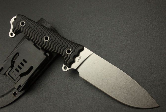 八喜—石洗D2直刀 全长:27cm 刃长:13.5cm 刃宽:4.3cm(最宽处) 刃厚:0.48cm 刃材:D2钢 硬度:50HRC 表面:石洗 柄材:G10 柄长:12cm 总重:440克(含刀套) 附件:K鞘