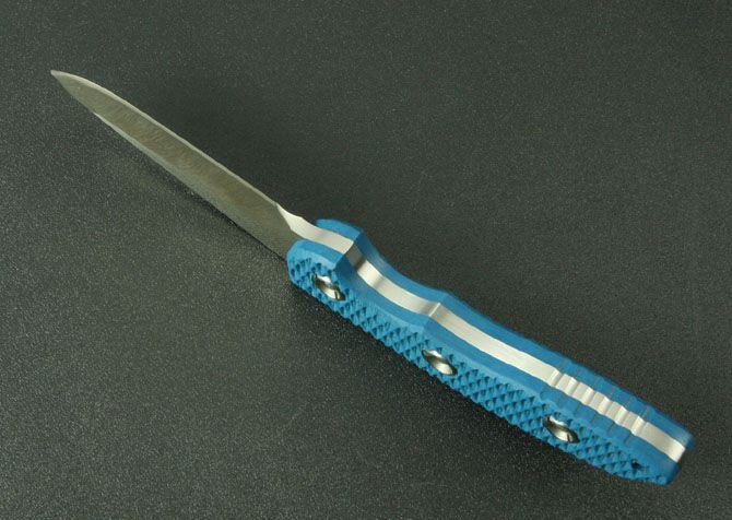 袖珍版XM—18小直(蓝柄、黑柄) 全长:18.2CM 刃长:7.5CM 刃材:9Cr13 硬度: 60HRC 刃厚: 0.4CM 刃宽:2.5CM (最宽处) 柄长: 10.2CM 柄材: G10 净重:100g 涂层:砂光 刀鞘:k鞘