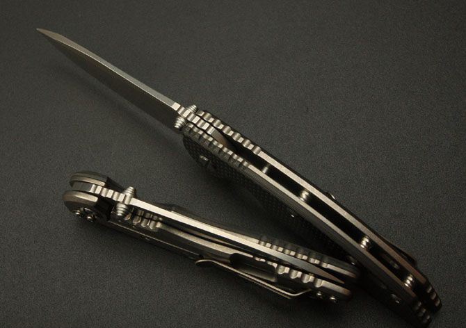 XM—18(碳纤.钛合金) 全 长:21.2cm 刃 长:8.0cm 柄 长:12.2cm 刃 宽:3.0cm(最宽处) 刃 厚:3.5mm 刃 材:D2高速钢 硬 度:60-62HRC 刀 柄:钛合金(表面经石洗处理),加碳纤 表 面:丝光 锁定方式:侧锁 重 量:170克 备 注:带真皮套和钛合金背夹(可上下调换) 其他:这是一款全球最畅销最红火的折刀