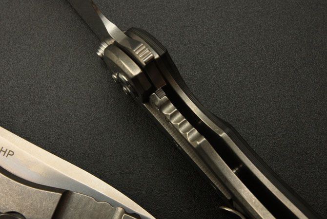 全 长:21.2cm 刃 长:8.0cm 柄 长:12.2cm 刃 宽:3.0cm(最宽处) 刃 厚:3.5mm 刃 材:D2高速钢 硬 度:60-62HRC 刀 柄:钛合金(表面经石洗处理),加碳纤 表 面:丝光 锁定方式:侧锁 重 量:170克 备 注:带真皮套和钛合金背夹(可上下调换) 其他:这是一款全球最畅销最红火的折刀