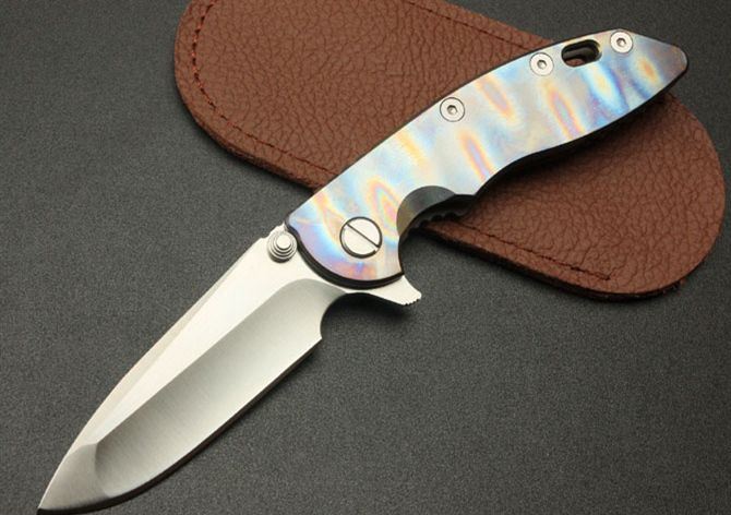 XM—18小号(火烧纹.网纹) 全 长:18cm 刃 长:7.5cm 柄 长:10.5cm 刃 宽:2.3cm(最宽处) 刃 厚:3mm 刃 材:D2高速钢 硬 度:60-62HRC 刀 柄:钛合金 表 面:砂光 锁定方式:侧锁 重 量:190克(含包装) 备 注:带真皮套和钛合金背夹