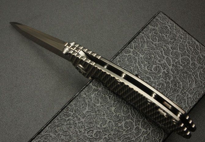 全 长:18cm 刃 长:7.5cm 柄 长:10.5cm 刃 宽:2.3cm(最宽处) 刃 厚:3mm 刃 材:D2高速钢 硬 度:60-62HRC 刀 柄:钛合金 表 面:砂光 锁定方式:侧锁 重 量:190克(含包装) 备 注:带真皮套和钛合金背夹