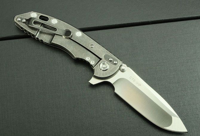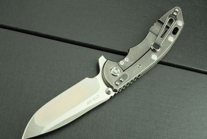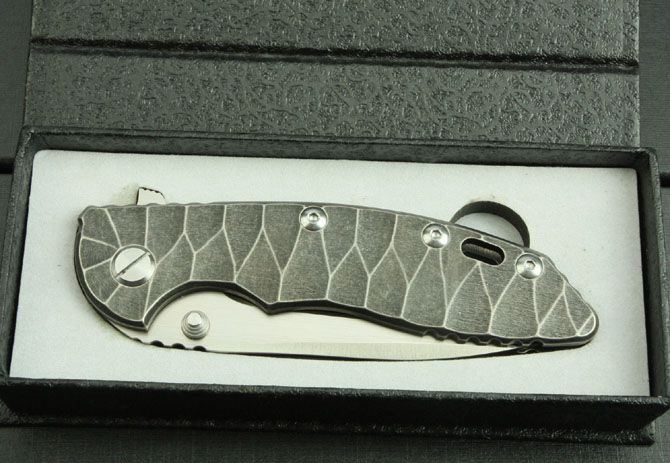 XM-18小T柄版 全 长:21cm 刃 长:8.5cm 柄 长:12.2cm 刃 宽:2.9cm(最宽处) 刃 厚:3.5mm 刃 材:D2高速钢 硬 度:60-62HRC 刀 柄:钛合金(表面经石洗处理) 表 面:丝光 锁定方式:侧锁 重 量:238克(含包装) 备 注:配硬纸盒和钛合金背夹(可上下调换)