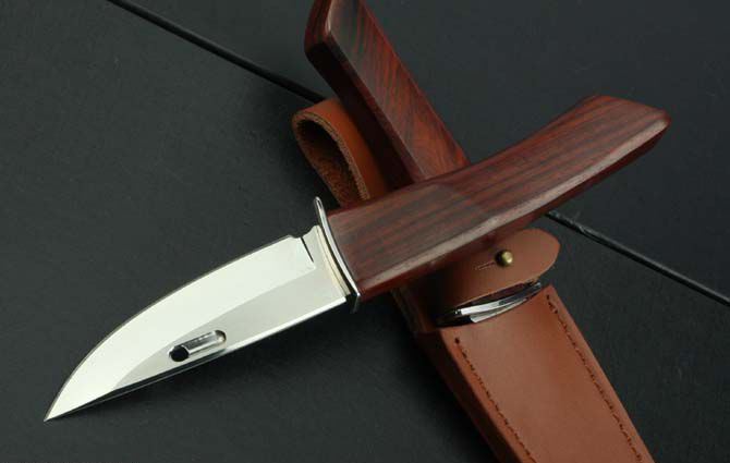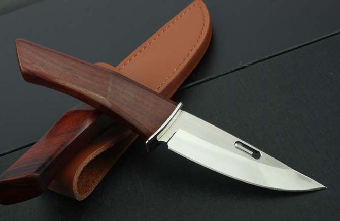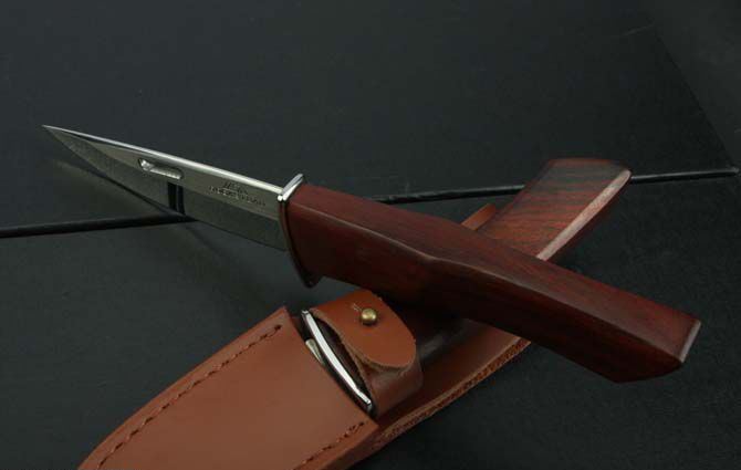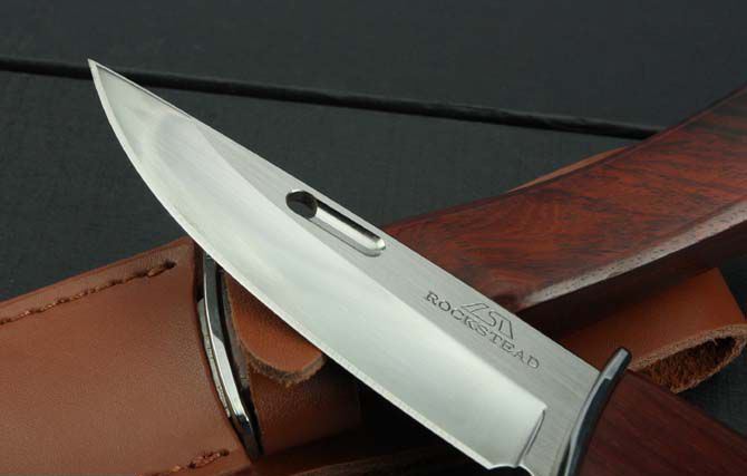 全 长:215mm 刃 长:92mm 柄 长:120mm 刃 宽:27mm 刃 厚:3.2mm 刃 材:7Cr17Mov 重 量:139g(含包装) 硬 度:58HRC{真空热处理) 表 面:拉丝+镜光(V型刀背) 柄 材:红檀木 刀 鞘:配皮套和纸盒