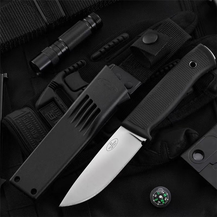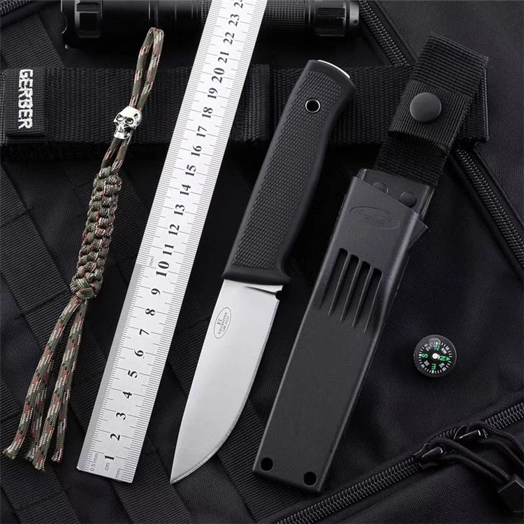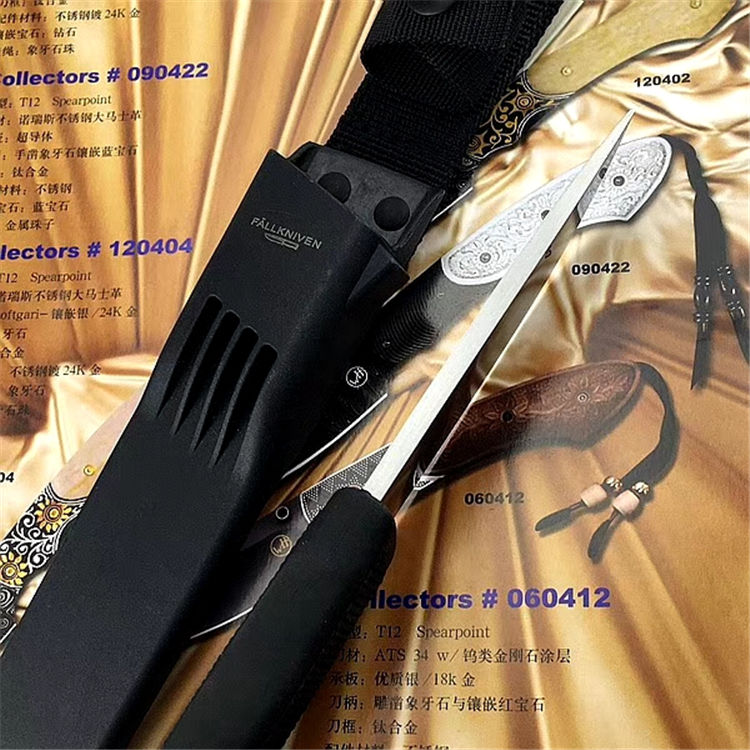 瑞典—福克尼F1直刀 全 长: 210mm 刃 长: 100mm 刃 厚: 4.4mm 表 面: 镀钛 刃 材: 440C 硬 度: 58HRC 柄 长: 110mm 重 量: 230g 柄 材: 注塑 刀 鞘: ABS套 包 装:纸盒
