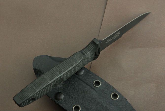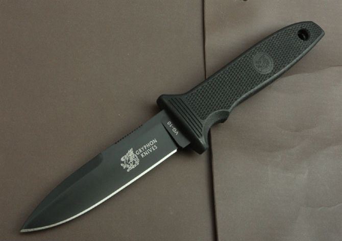 瑞典鹰狮-M10靴刀 全 长:213mm 刃 长:92mm 柄 长:113mm 刃 宽:22mm 刃 厚:4.4mm 刃 材: 进口日本VG-10钢 重 量:190g(含包装) 硬 度:59HRC 表 面:氧化黑 柄 材:ABS尼龙+波纤注塑 锁 型:定锁 其 他:白盒子+K鞘