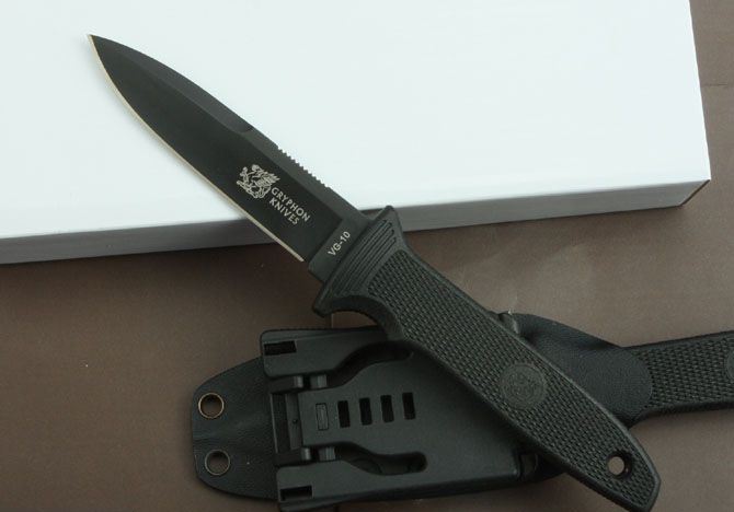 全 长:213mm 刃 长:92mm 柄 长:113mm 刃 宽:22mm 刃 厚:4.4mm 刃 材: 进口日本VG-10钢 重 量:190g(含包装) 硬 度:59HRC 表 面:氧化黑 柄 材:ABS尼龙+波纤注塑 锁 型:定锁 其 他:白盒子+K鞘