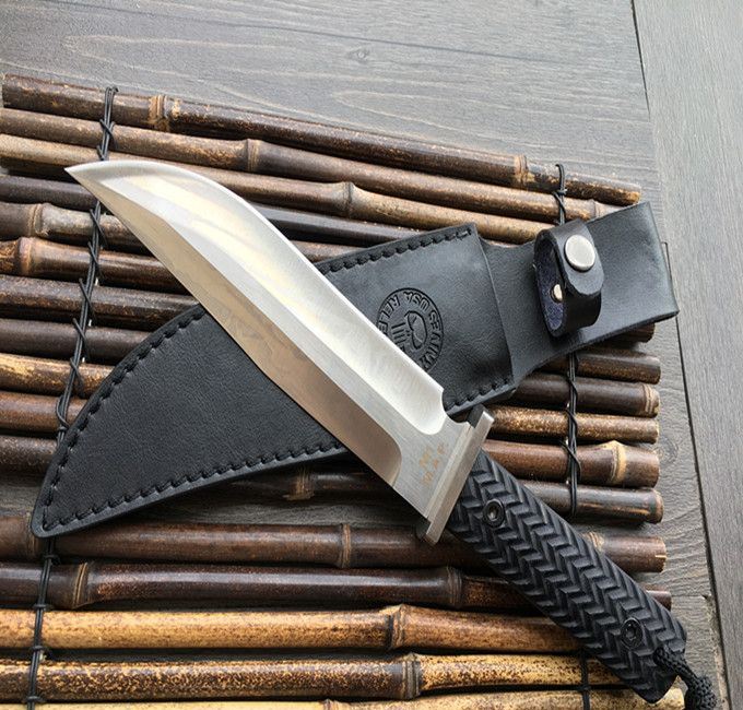 骷髅头开拓者直刀 全长:33cm 刃长:18.8cm 柄长:12cm 刃厚:6mm 刃宽:4.2cm 刃材:8Cr13 柄材:米卡塔 硬度:58HRC 净重:1260克 表面处理:拉砂 刀套:牛皮,配木盒,工具,螺丝 此刀属于清仓品,配刀木盒钉上有少许锈迹属于正常