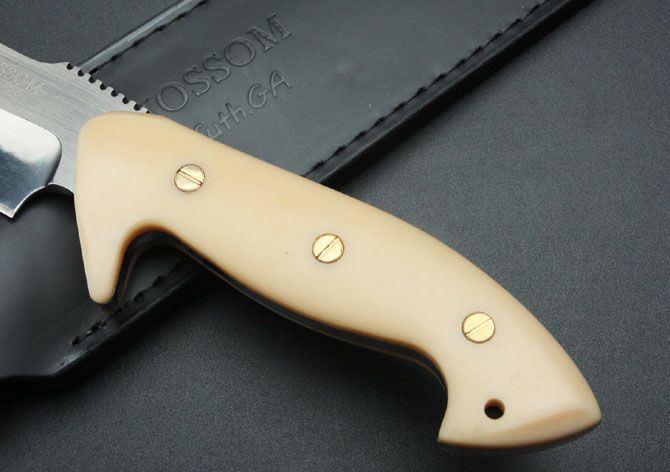 高跟鞋砍刀 全 长:480mm 刃 长:325mm 刃 宽:50mm(最宽) 刃 厚:5.8mm 刃 材:440C 硬 度:58-59HRC{ 表 面:钢本色(精细镜光,拉丝处理) 柄 材:G10,CNC 3D成型 刀 鞘:黑色皮套 净 重: 670克