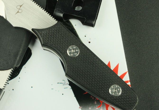 全 长: 19.6cm 刃 长: 10cm 刃 厚: 0.57CM 刃 材: GB-D2 净 重: 410g 硬 度: 58-60Hrc 柄 材: 黑色G10 表 面: 手工砂光 刀 套: 进口K鞘