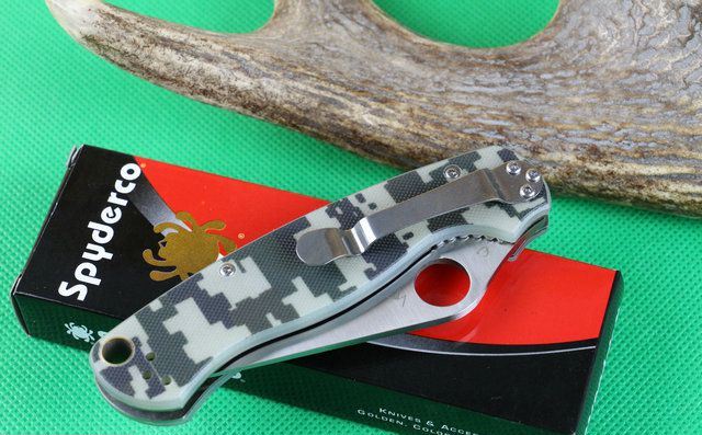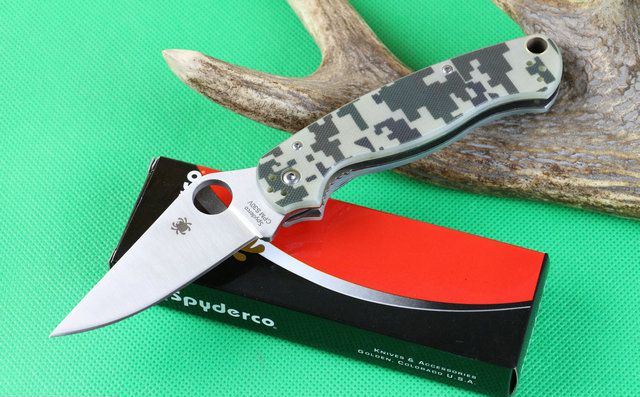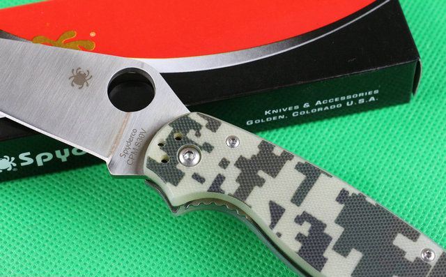 蜘蛛.C81折刀(迷彩.经济版) 全 长:21cm 刃 长:80cm 柄 长:12.5cm 刃 宽:3.2cm 刃 厚:3.0cm 刃 材:CPM-S30V 重 量:140g(含包装) 硬 度:58HRC 表 面:砂光 柄 材:黑色G10 锁 型:线锁 其 他:原厂彩盒
