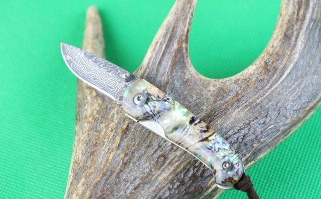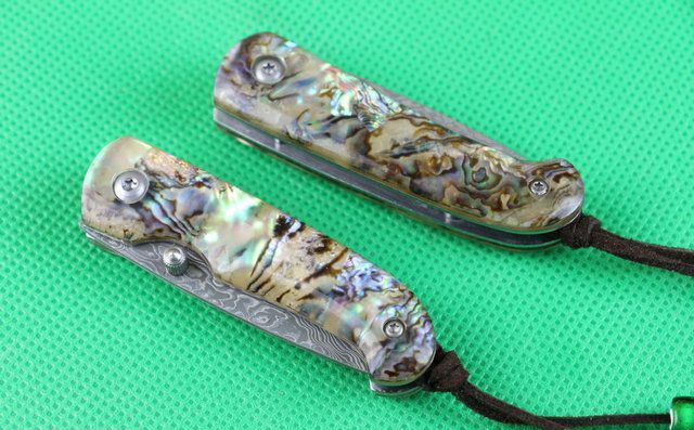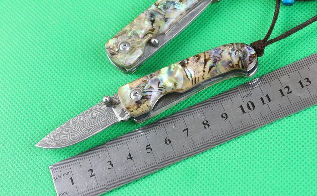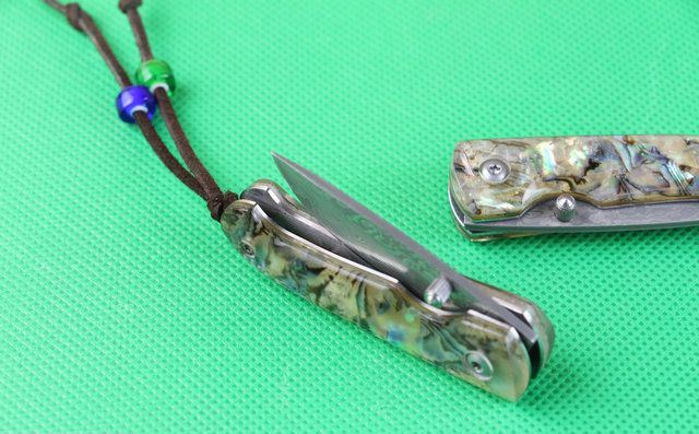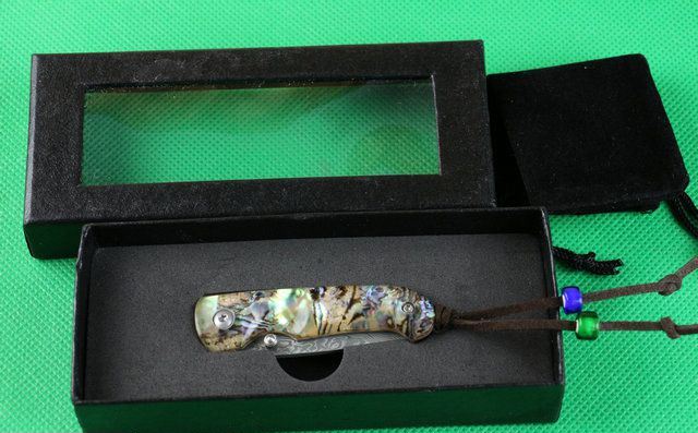 全 长:11.7cm 刃 长:4.5cm 柄 长:7.2cm 刃 厚:2.3mm 刃 材:大马士革钢 硬 度:58HRC 刀 柄:鲍贝+钢片 表 面:大马士革花纹 锁定方式:线锁 重 量:.0克(含绒袋) 包 装:礼品盒+绒袋 可以放入口袋,方便得体,是送女朋友最好礼物.