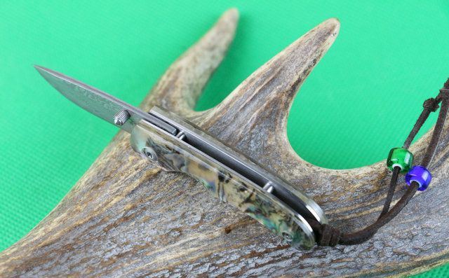 鲍贝.大马口袋小折刀 全 长:11.7cm 刃 长:4.5cm 柄 长:7.2cm 刃 厚:2.3mm 刃 材:大马士革钢 硬 度:58HRC 刀 柄:鲍贝+钢片 表 面:大马士革花纹 锁定方式:线锁 重 量:.0克(含绒袋) 包 装:礼品盒+绒袋 可以放入口袋,方便得体,是送女朋友最好礼物.