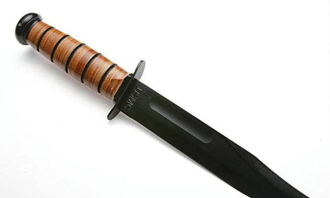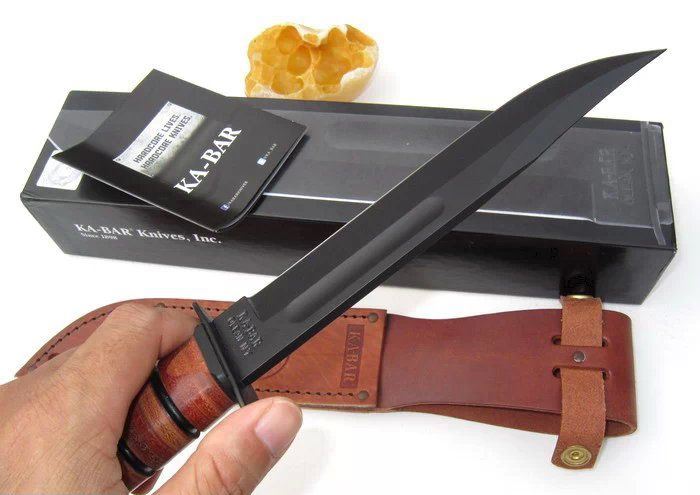 这把刀已无须再介绍了,只要是军事迷必然都知道这把刀的丰功伟业,美国Blade杂志将它列为二十世纪最具代表性的20把刀之一,这把刀的军用型号是USN Mark II 之所以叫Ka-bar(卡巴)是因由Ka-bar 厂制作的最有名气。