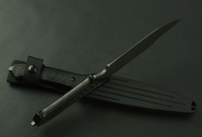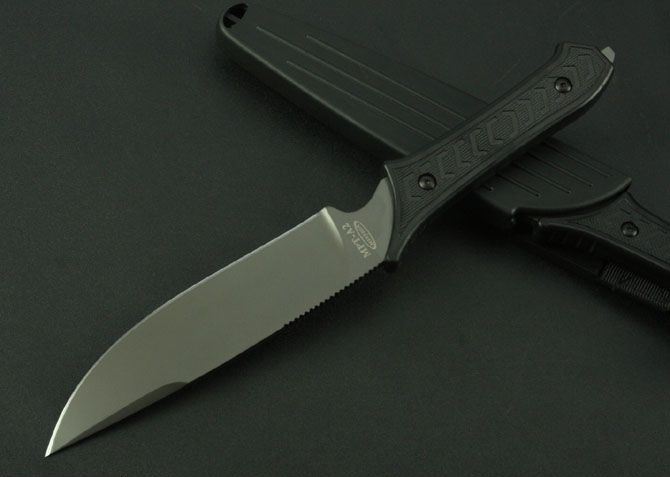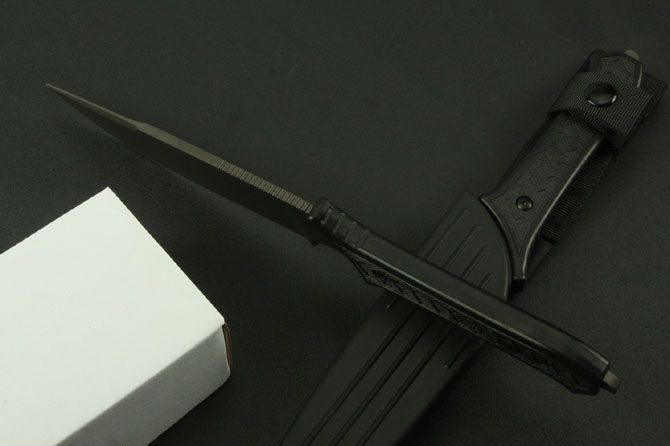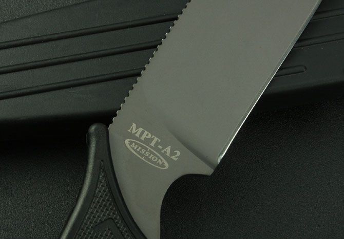 使命—MPT(A2)战术直刀 全 长:295mm 刃 长:150mm 柄 长:135mm 刃 宽:35mm 刃 厚:4.8mm 刃 材:8Cr13Wov 重 量:290g 硬 度:58HRC 表 面:镀钛 柄 材:ABS(塑胶) 锁 型:定锁 其 他:配ABS(塑胶)套