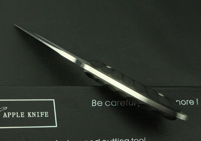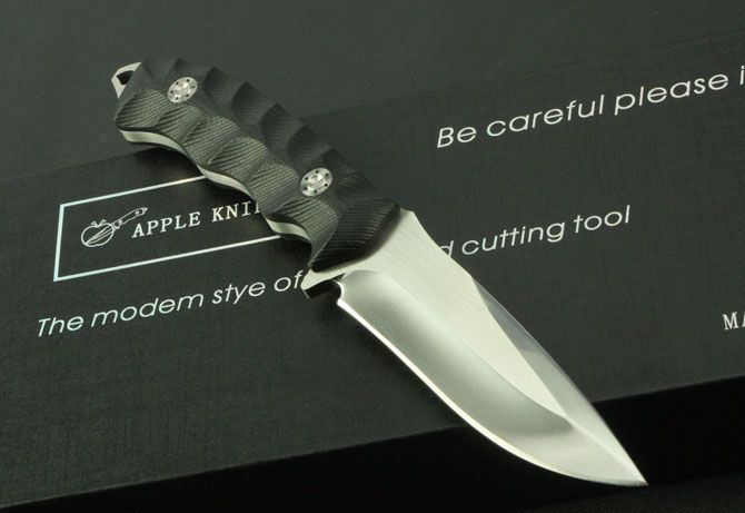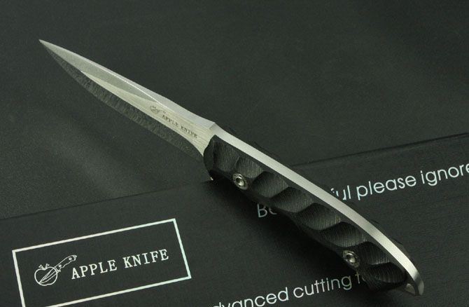 苹果—TX1小直 全 长:220mm 刃 长:105mm 柄 长:110mm 刃 宽:27mm 刃 厚:4.6mm 刃 材:9Cr13 重 量:430g(含包装) 硬 度:58HRC 表 面:镜光拉丝 柄 材:黑色G10 锁 型:定锁 其 他:硬纸盒和皮套