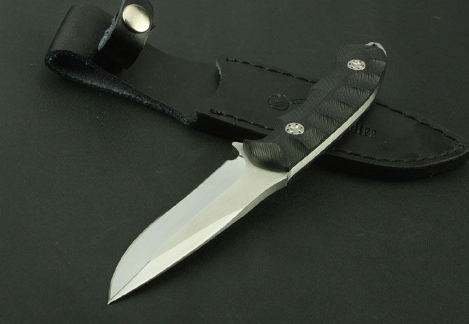 全 长:220mm 刃 长:105mm 柄 长:110mm 刃 宽:27mm 刃 厚:4.6mm 刃 材:9Cr13 重 量:430g(含包装) 硬 度:58HRC 表 面:镜光拉丝 柄 材:黑色G10 锁 型:定锁 其 他:硬纸盒和皮套