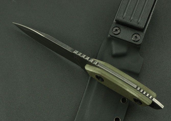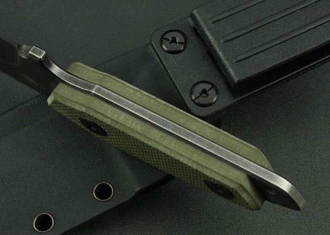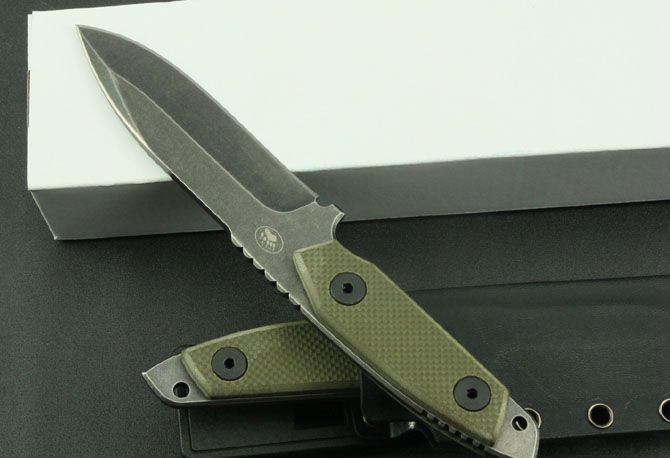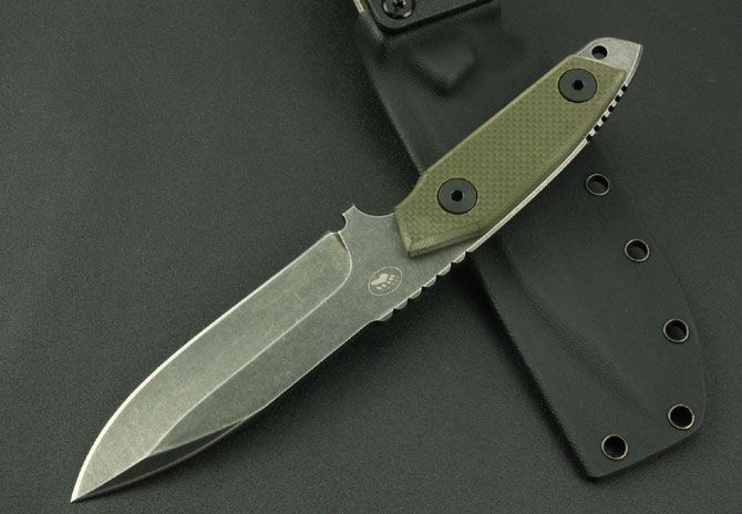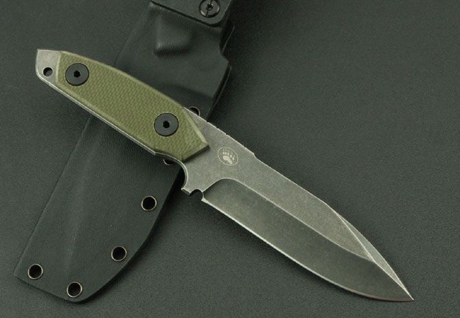 材 质:9CR18MOV (锻打) 刃面打磨:双面磨 热 处 理:真空+深冷处理 主要性能:切,割,削为主,超凡耐磨性保持性 硬 度:60±1HRC 表面处理:怀旧亚光处理 手 柄:G10手柄 尺 寸:223MM(长)、4.9MM(厚) 配 件:加厚K鞘、携带系统
