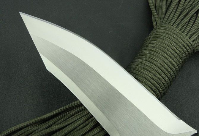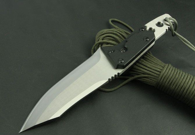 关之朋—铁血战士直刀 全 长:305mm 刃 长:160mm 柄 长:145mm 刃 宽:50mm 刃 厚:6.4mm 刃 材:7Cr17Mov 重 量:630g(含包装) 硬 度:57HRC 表 面:砂光 柄 材:黑色G10 锁 型:定锁 其 他:配牛皮套和牛皮纸盒