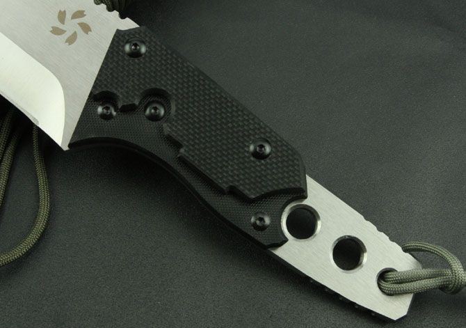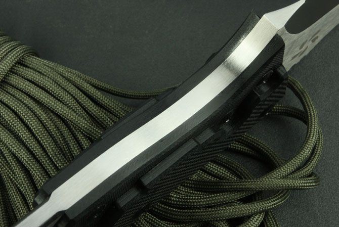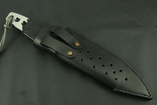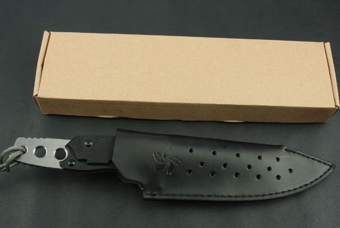 全 长:305mm 刃 长:160mm 柄 长:145mm 刃 宽:50mm 刃 厚:6.4mm 刃 材:7Cr17Mov 重 量:630g(含包装) 硬 度:57HRC 表 面:砂光 柄 材:黑色G10 锁 型:定锁 其 他:配牛皮套和牛皮纸盒