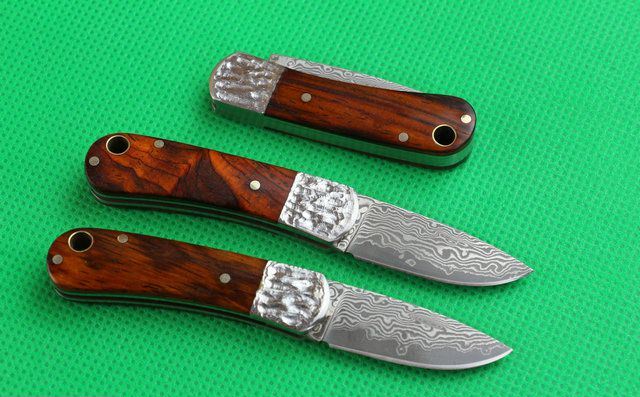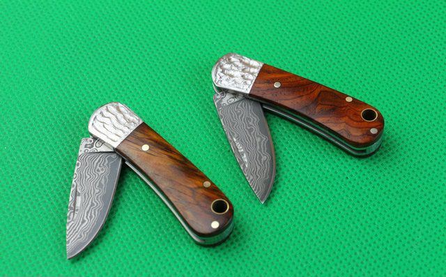 黄檀迷你口袋折刀 全 长:9.8cm 刃 长:4.0cm 柄 长:5.9cm 刃 厚:2.1mm 刃 材:大马士革钢 硬 度:58HRC 刀 柄:天然黄檀+钢片 表 面:大马士革花纹 锁定方式:无锁 重 量:.0克(含包装) 本小刀刀柄木纹纹路非常清晰,漂亮,黄檀木稀少