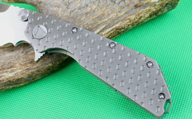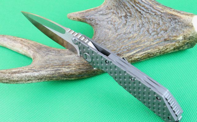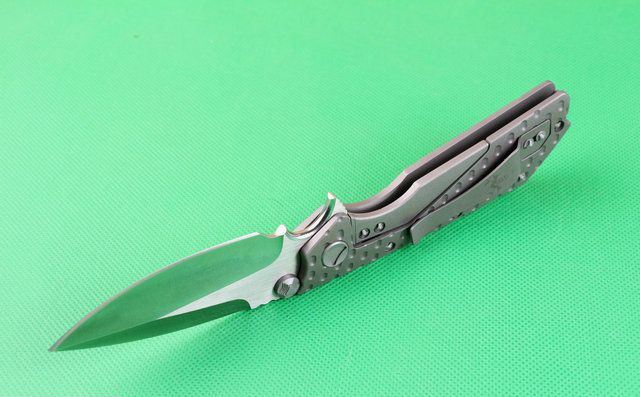 全长:228mm 刃长:96mm 柄长:130mm 刃宽:36mm 刃厚:5.0mm 刃材:D2(深冷处理) 重量:260g 硬度:58-60HRC 表面:拉丝 柄材:手柄全TC4钛合金、底骨TC4钛合金蓝色阳极电镀处理。 刀夹:TC4钛合金 锁型:分体插入锁杆式线锁。 螺丝:所有螺丝420不锈钢、硬度HRC45、全CNC精雕加工。 结构:分体插入锁杆式线锁结构、锁刀接触镶嵌合金粒、陶瓷定位珠、内置平面滚针轴承垫片。 其他:配彩合和出世纸